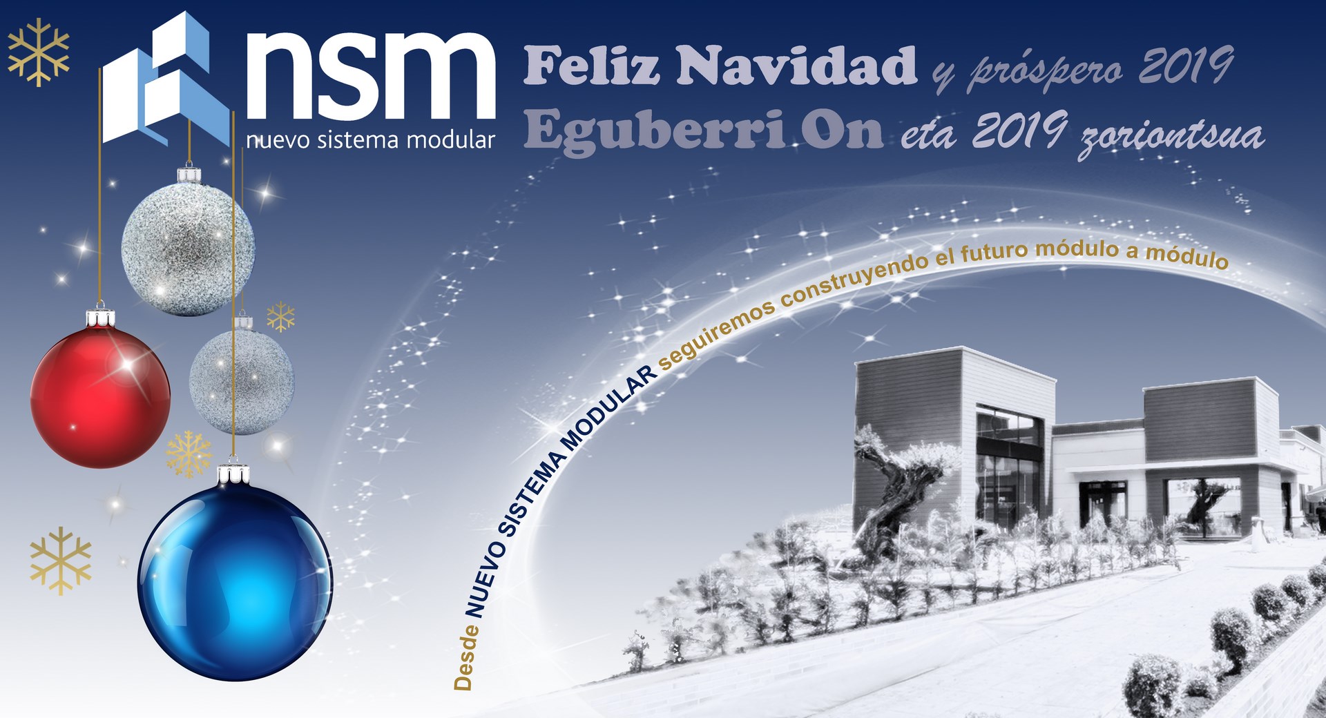 Nuevo Sistema Modular les desea una feliz entrada de año 2019 y un próspero Año Nuevo. Eguberri On eta 2019 zoriontsua!