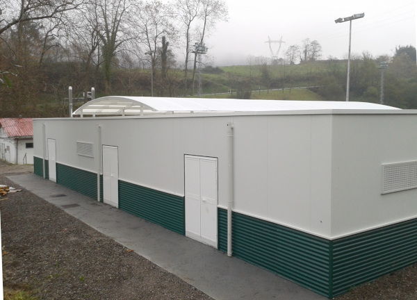 Conjunto modular industrializado para los vestuarios y almacén del campo de fútbol
