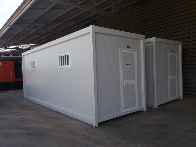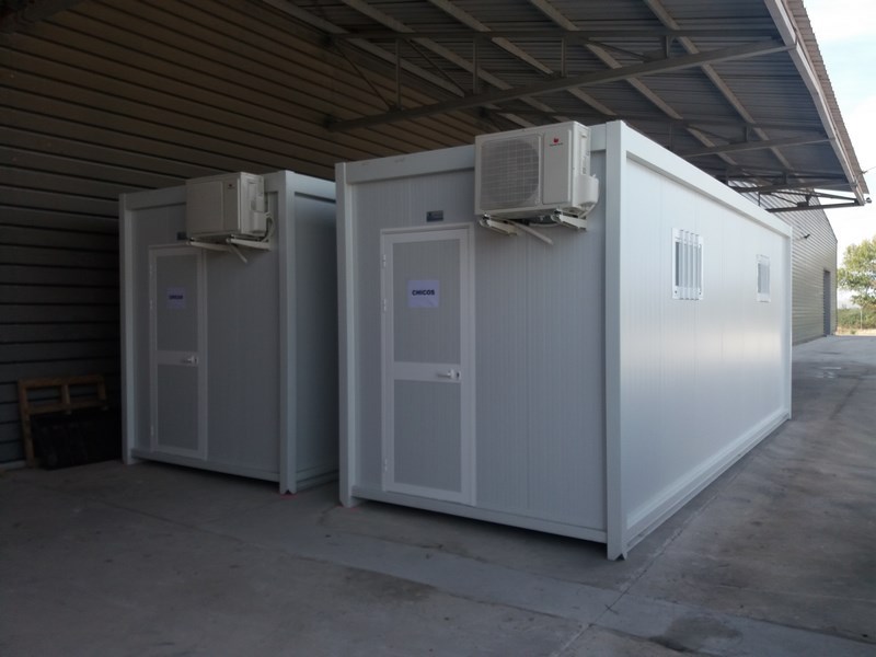 Dos módulos prefabricados destinados a vestuarios en Marcilla